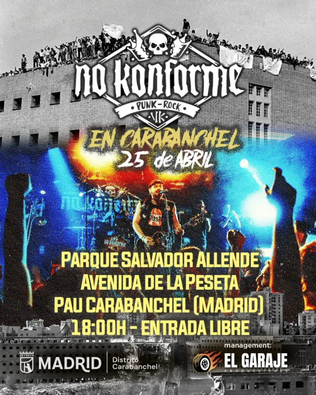 No Konforme estaremos junto a Reina Roja en el ciclo "Plazas con Alma" el próximo 25 de Abril en el Parque Salvador Allende, al lado de la Avenida de la Peseta en Carabanchel.